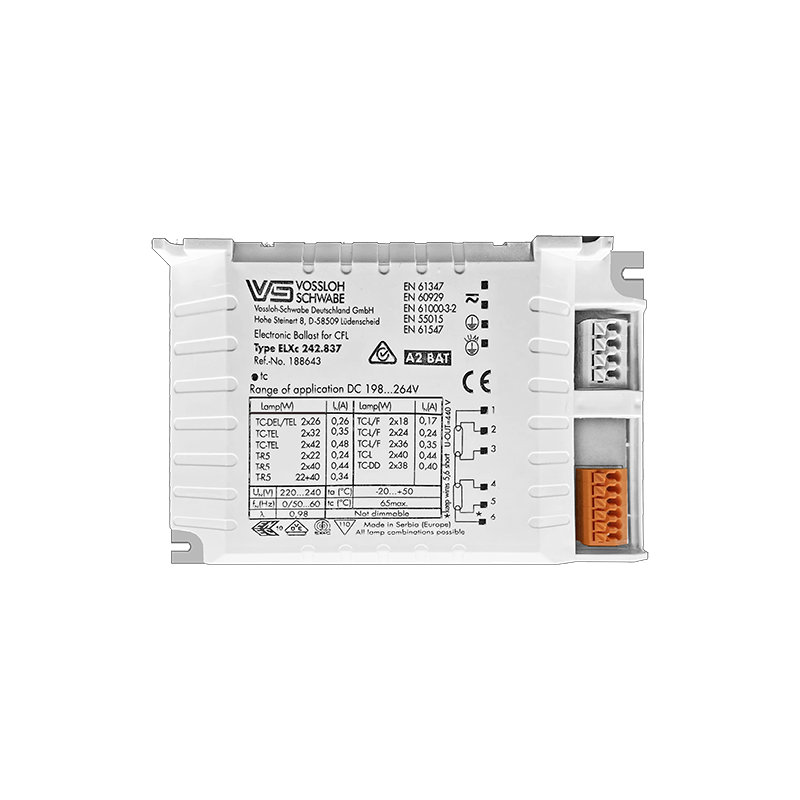 - Подходит для ламп: TC-DD 2x38, TC-L 2х40, TC-F 2х18/24/36, T-R5 2x22/40, TC-T/E 2x32/42, TC-T/E 2x26, TC-D/E 1x26