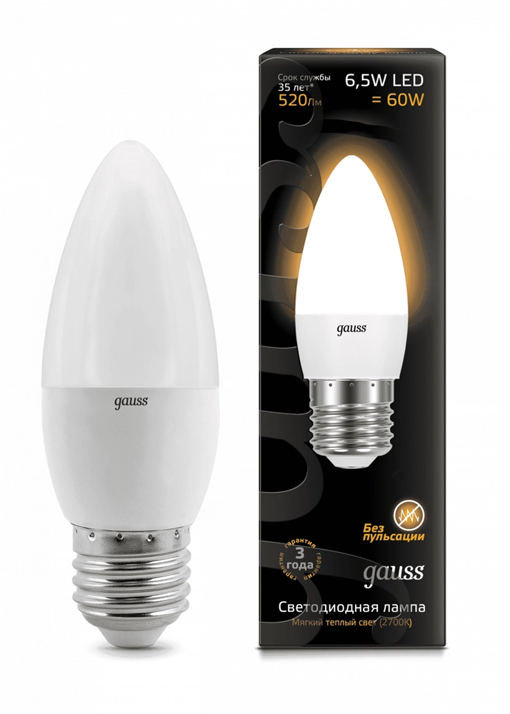 Gauss 6.5W 520lm 3000 E27 LED 1/10/100 103102107 лампа