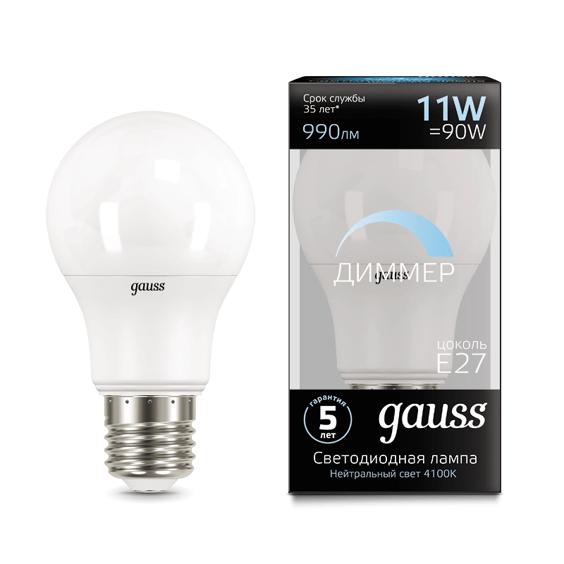 Gauss A60 11W 990lm 4100 E27 LED 1/10/50 102502211-D лампа