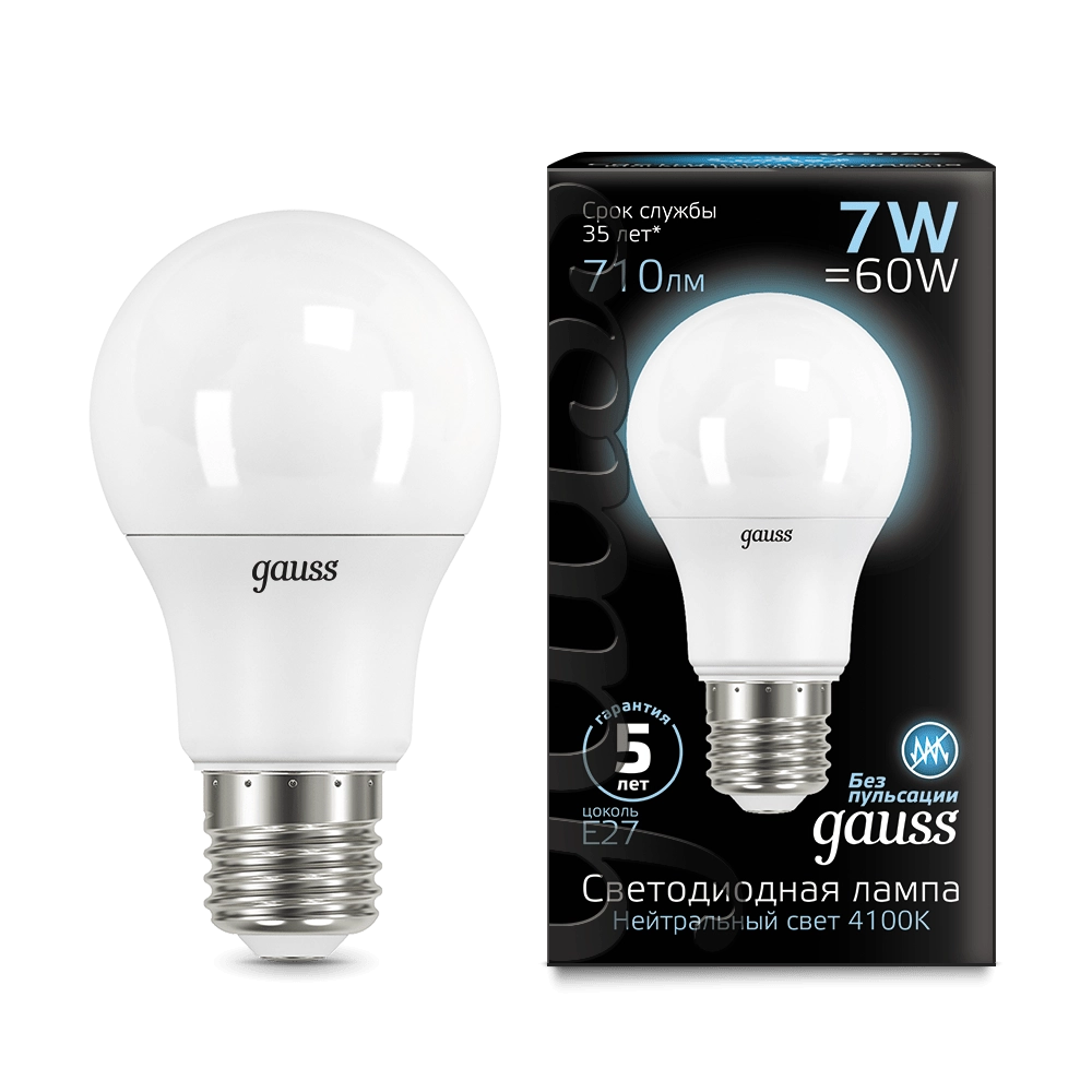 Gauss A60 7W 710lm 4100K E27 LED 1/10/50 102502207 лампа