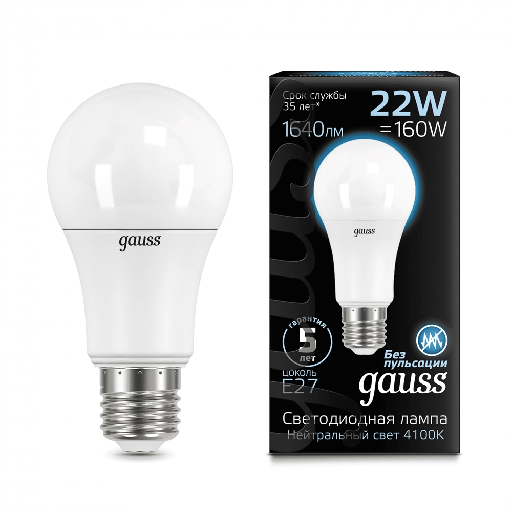Gauss A70 22W 2000lm 4100K E27 LED 1/10/50 102502222 лампа