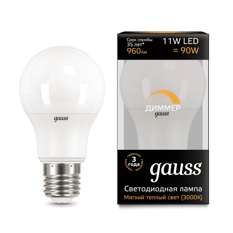 Gauss A60 11W 960lm 3000 E27 LED 1/10/50 102502111-D лампа
