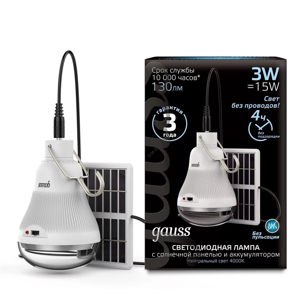 Gauss A60 3W 130lm 4000K E27 LED 1/40 902102203 лампа