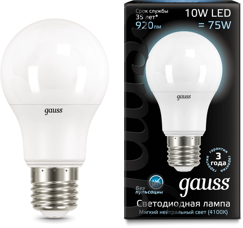 Gauss A60 10W 920lm 4100K E27 LED 1/10/50 102502210 лампа