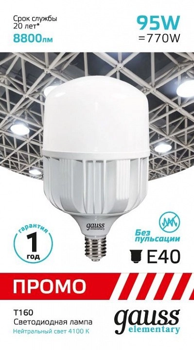 Gauss Elementary T160 95W 8800lm 4100K E40 Promo LED 1/6 60420 лампа