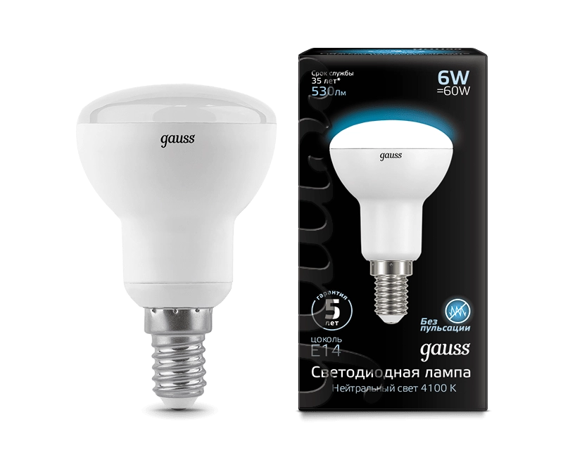 Gauss R50 6W 530lm 4100K E14 LED 1/10/100 106001206 лампа