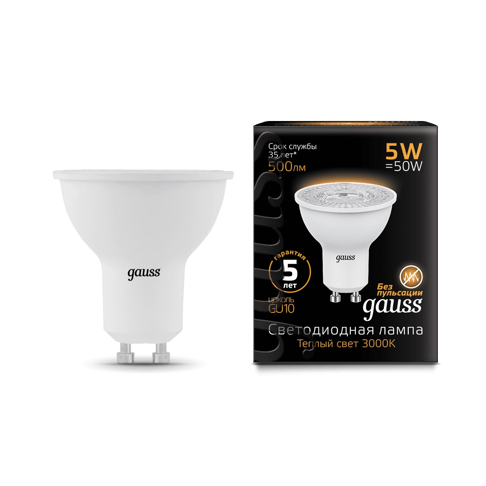 Gauss MR16 5W 500lm 3000K GU10 LED 1/10/100 101506105 лампа