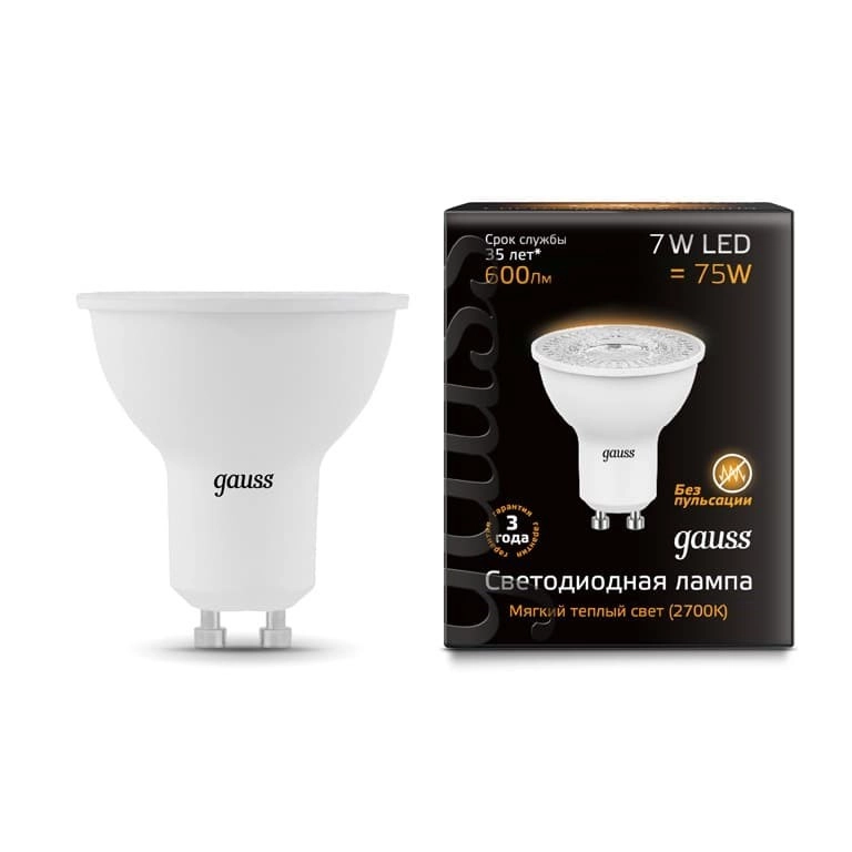 Gauss MR16 7W 600lm 3000K GU10 LED 1/10/100 101506107 лампа