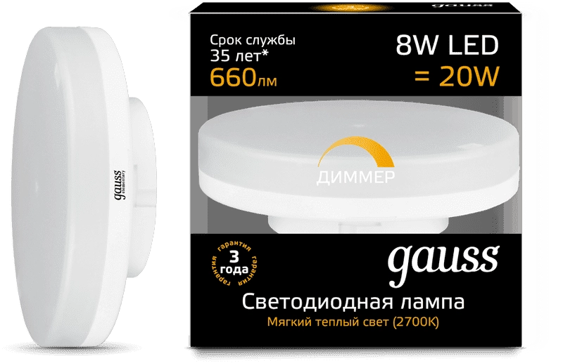 Gauss GX53 8W 660lm 3000K LED 1/10/100 108408108-D лампа