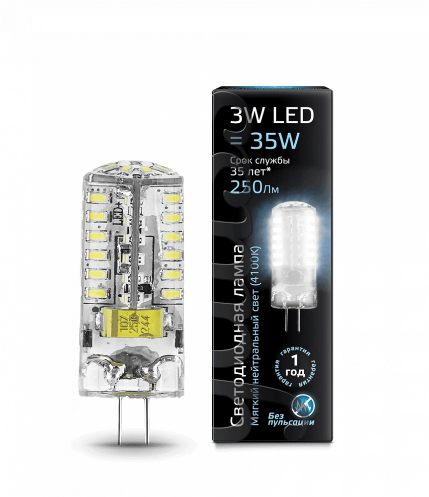 Gauss G4 AC220-240V 3.5W 260lm 4100K LED 1/10/200 107807203 лампа