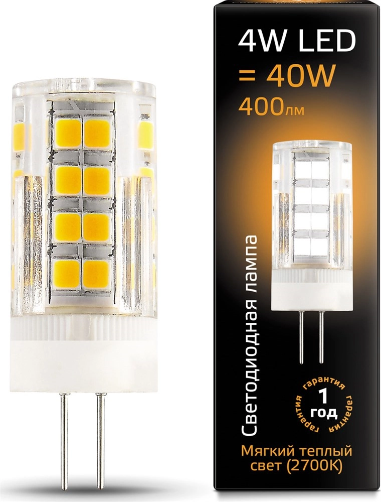 Gauss G4 12V 4W 400lm 2700K LED 1/10/200 207307104 лампа