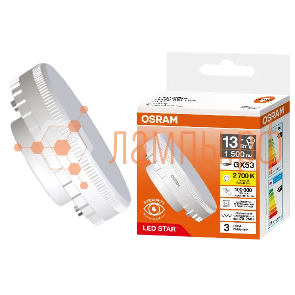 Лампа светодиодная таблетка GX53 13W/2700K (=150W) 230V LED Star 3Y GX