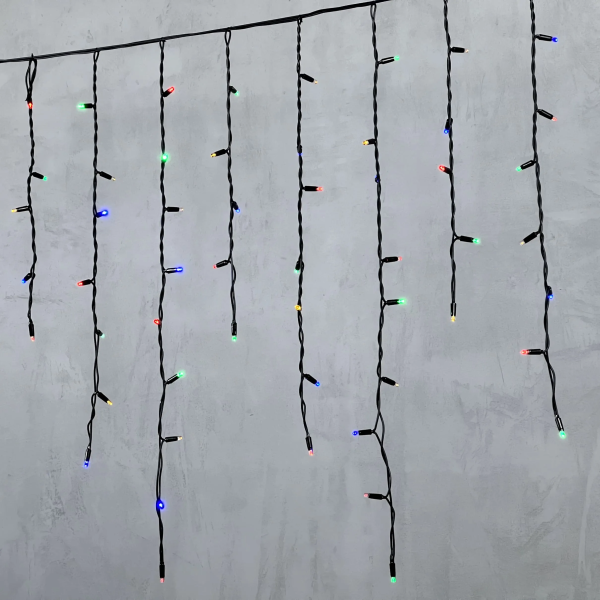 Гирлянда Бахрома 4,9 x 0,5 м Разноцветная 220В, 240 LED, Провод Черный ПВХ, IP54