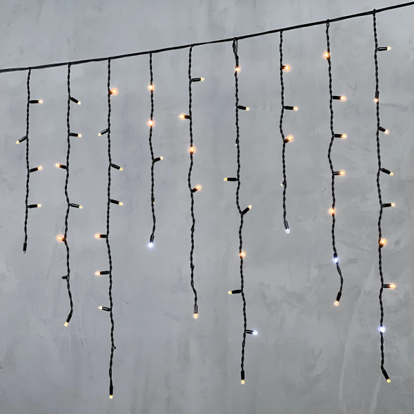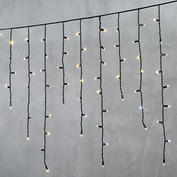 Гирлянда Бахрома 3,2 x 0,9 м Экстра Тепло-Белая с Мерцанием Белого Диода 220В, 168 LED, Провод Черный Каучук, IP65