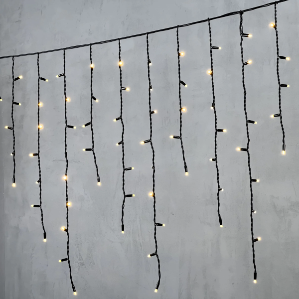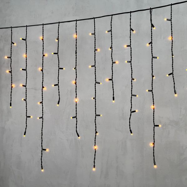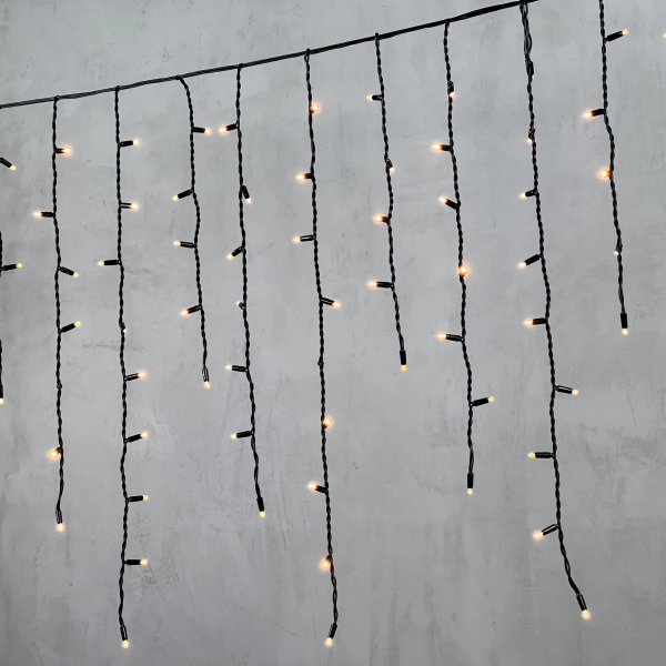 Гирлянда Бахрома 3,2 x 0,9 м Тепло-Белая 220В, 168 LED, Провод Черный Каучук, IP65