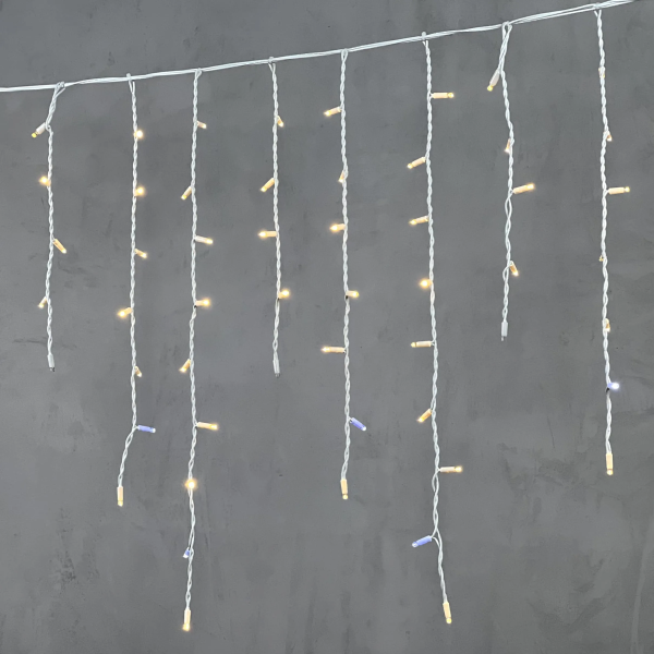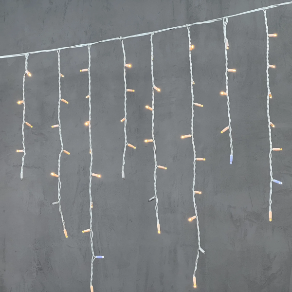 Гирлянда Бахрома 4,9 x 0,5 м Разноцветная с Мерцанием Белого Диода 220В, 240 LED, Провод Прозрачный ПВХ, IP54
