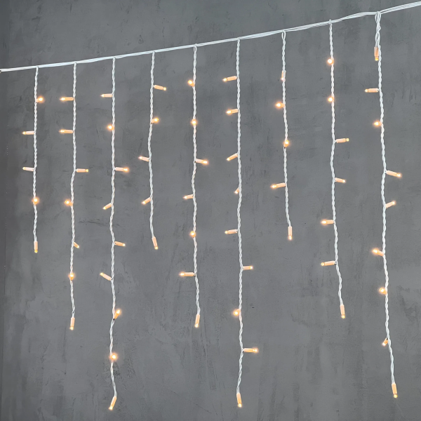 Гирлянда Бахрома с Колпачком 4,9 x 0,5 м Экстра Тепло-Белая 220В, 189 LED, Провод Прозрачный ПВХ, IP65