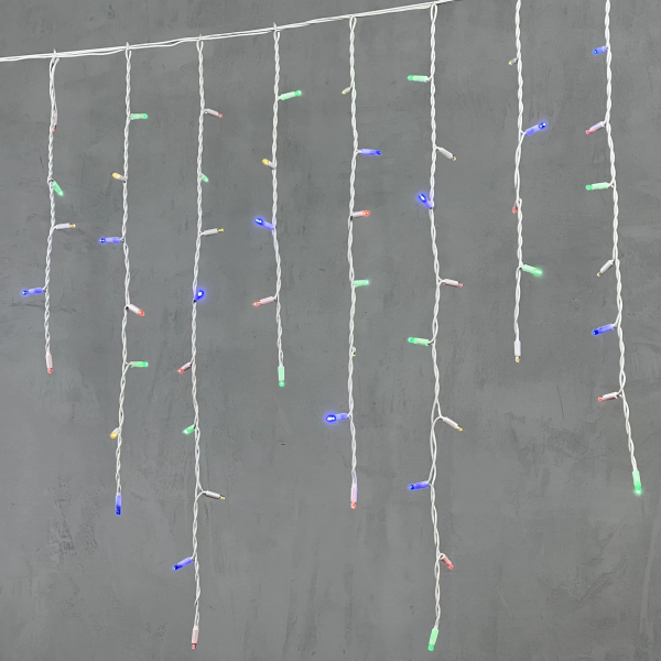 Гирлянда Бахрома 3,2 x 0,9 м Разноцветная 220В, 168 LED, Провод Белый Каучук, IP65