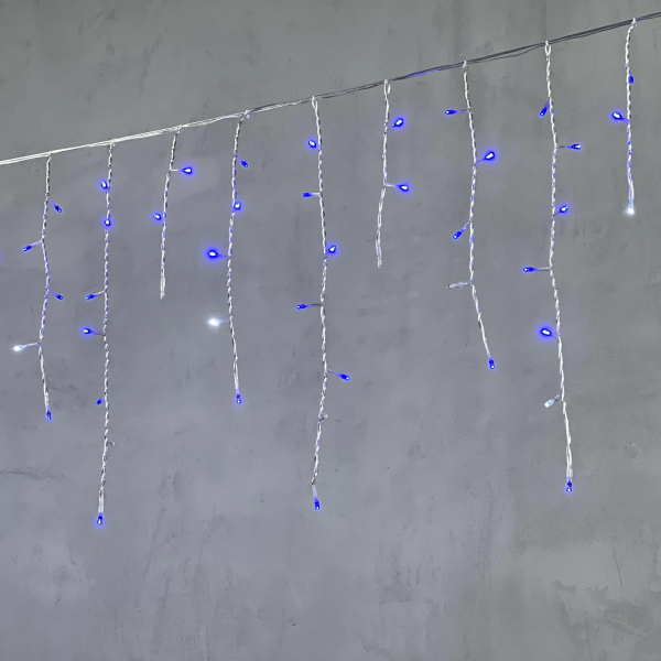 Гирлянда Бахрома 3,1 x 0,5 м Синяя с Мерцанием Белого Диода 220В, 150 LED, Провод Прозрачный ПВХ, IP54
