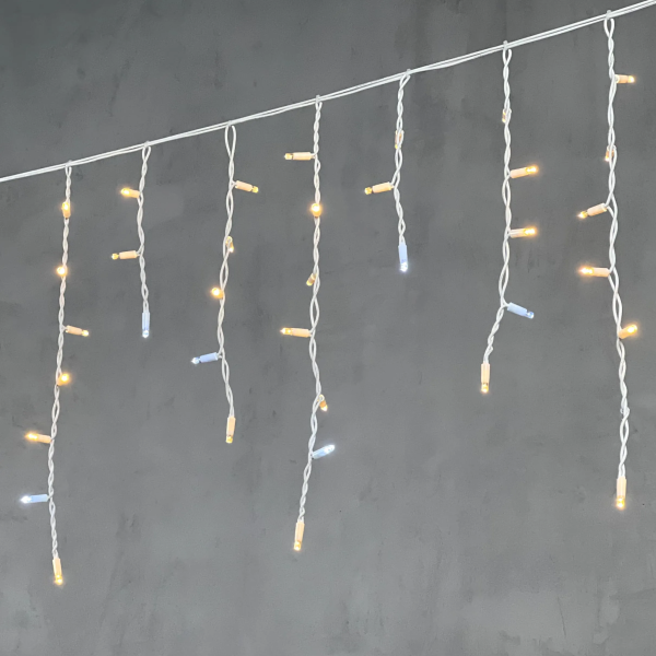 Гирлянда Бахрома 3,1 x 0,5 м Тепло-Белая с Мерцанием Белого Диода 220В, 120 LED, Провод Белый Каучук, IP65