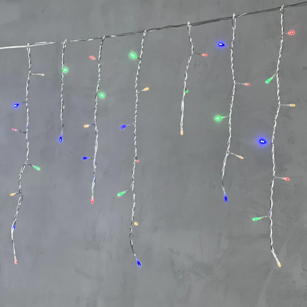 Гирлянда Бахрома 3,1 x 0,5 м Разноцветная с Мерцанием Белого Диода 220В, 150 LED, Провод Прозрачный ПВХ, IP54