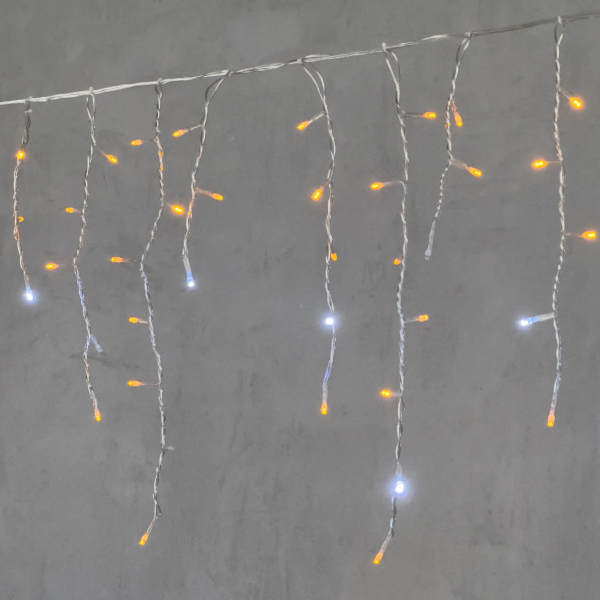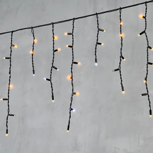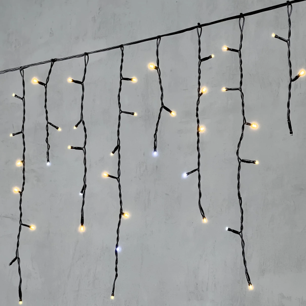 Гирлянда Бахрома 3,1 x 0,5 м Тепло-Белая с Мерцанием Белого Диода 220В, 120 LED, Провод Черный Каучук, IP65