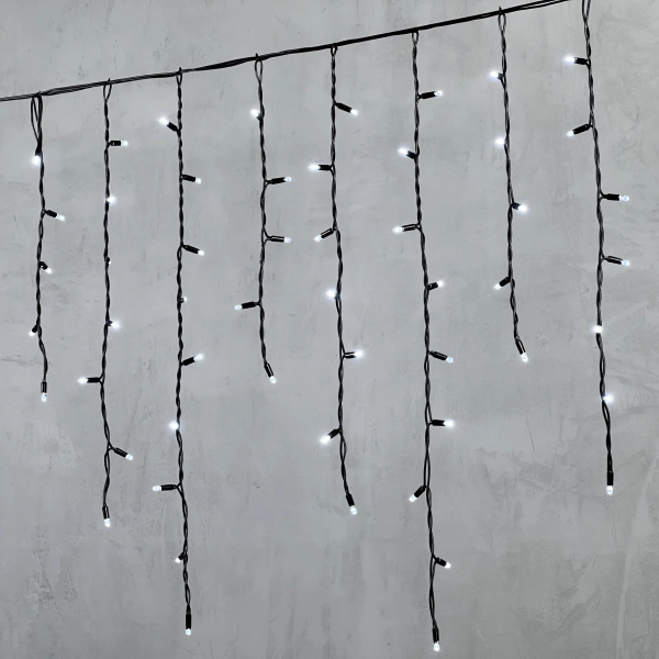 Гирлянда Бахрома с Колпачком 3,2 x 0,9 м Белая 220В, 168 LED, Провод Черный ПВХ, IP65