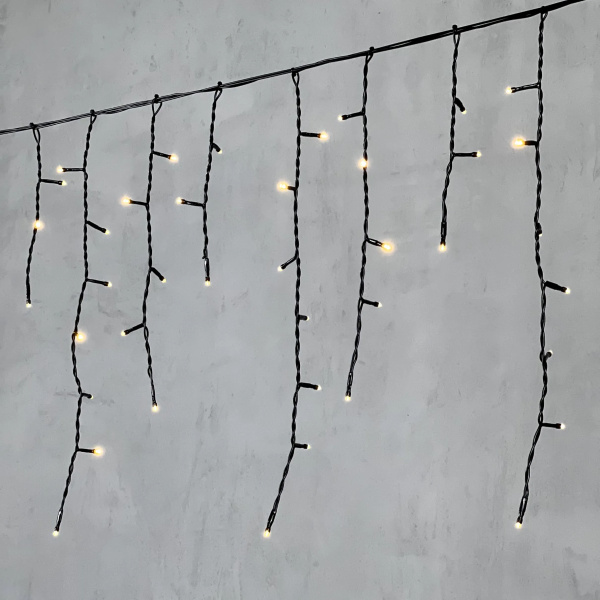 Гирлянда Бахрома 3,1 x 0,5 м Тепло-Белая 220В, 150 LED, Провод Черный ПВХ, IP54