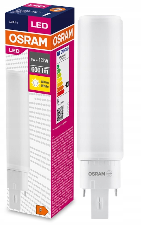 Лампа светодиодная OSRAM LED Dulux Special, 600лм, 6Вт (замена 13Вт), 3000К (теплый белый свет). Цоколь G24d-1, колба Special, угол пучка 120°. Исполнение колбы прозрачное, пластик. Напряжение питания 220-240В.