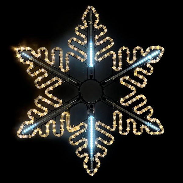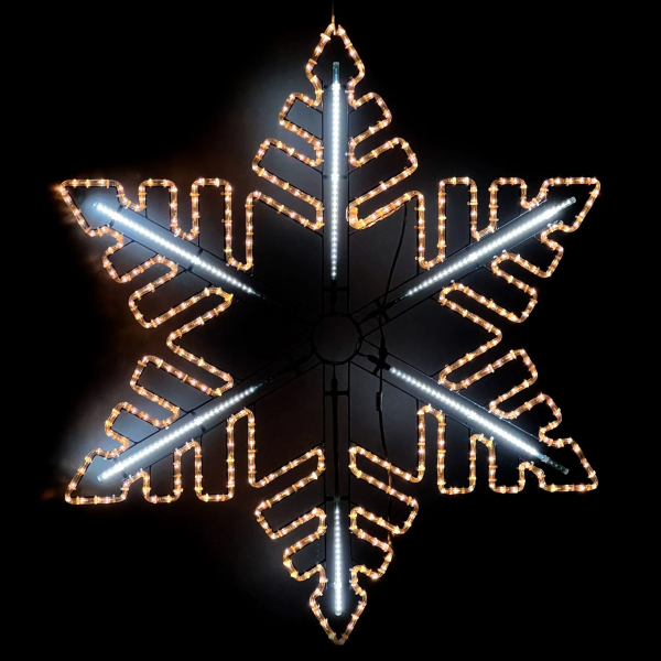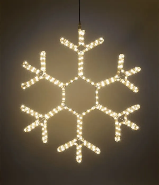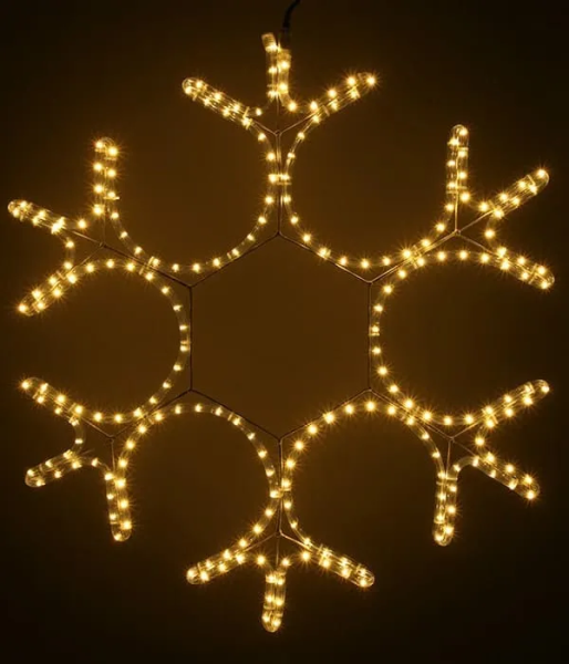 Светодиодная Снежинка «Кристалл» Ø1,15м Тепло-Белая, Дюралайт на Металлическом Каркасе, IP54