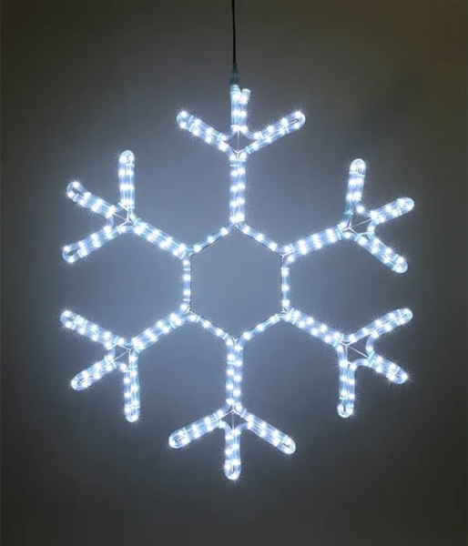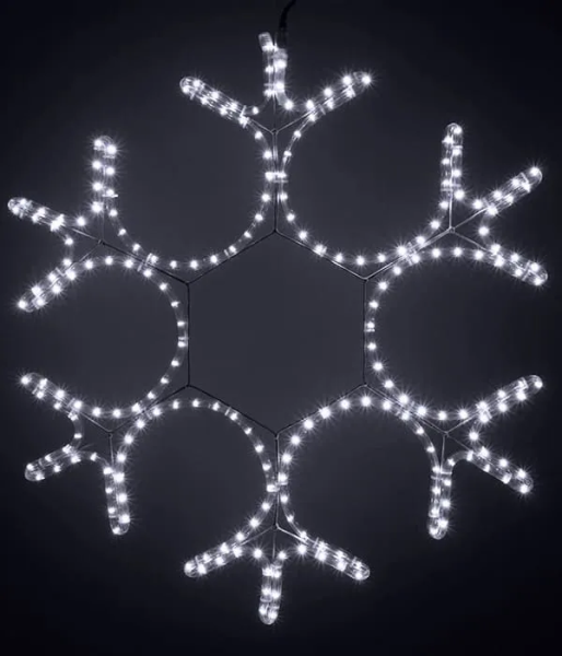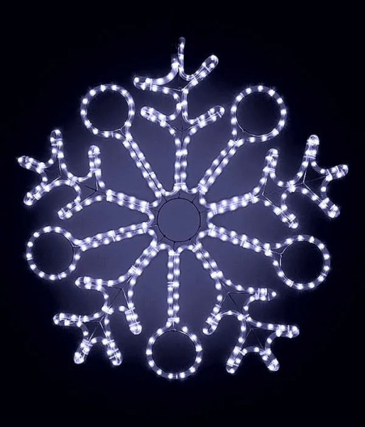 Светодиодная Снежинка «Кристалл» Ø1,15м Белая, Дюралайт на Металлическом Каркасе, IP54