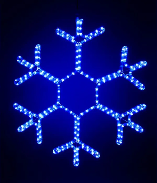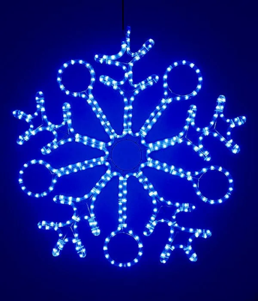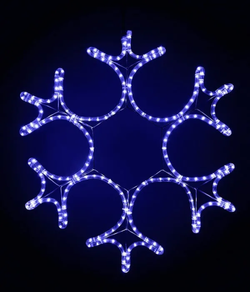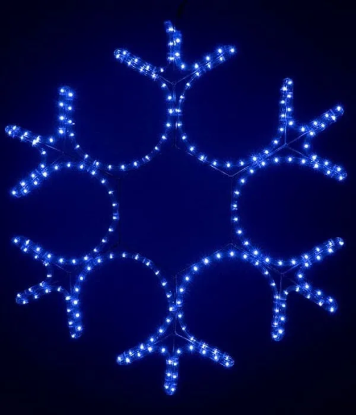 Светодиодная Снежинка «Кристалл» Ø1,15м Синяя, Дюралайт на Металлическом Каркасе, IP54
