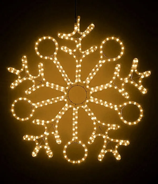 Светодиодная Снежинка «Зимняя Классика» Ø1,1м Тепло-Белая, Дюралайт на Металлическом Каркасе, IP54